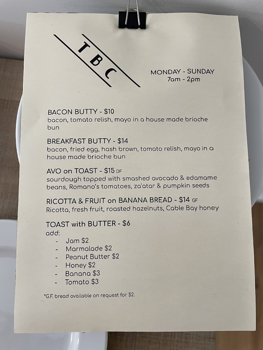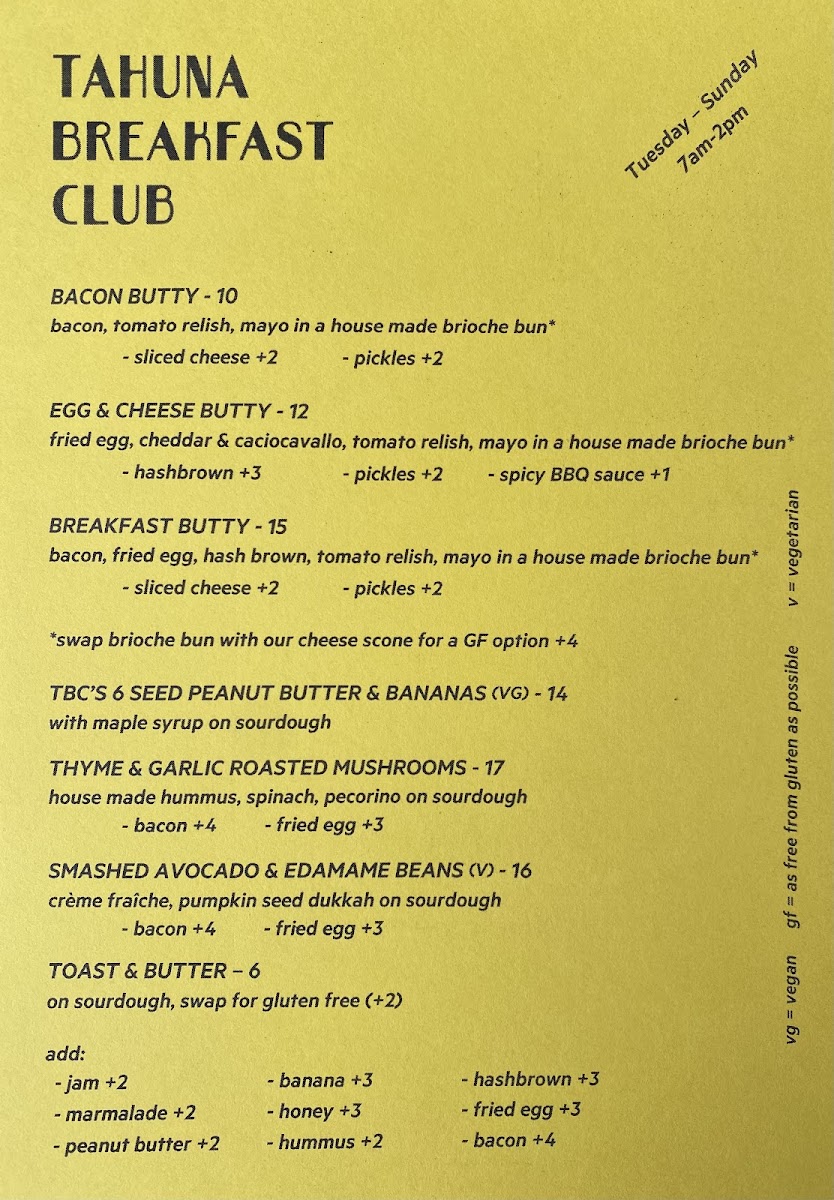 Tahuna Breakfast Club Menu